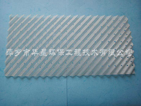 塑料規(guī)整填料具有重量輕,通量大、壓降低、比表面積高、易更換等優(yōu)點(diǎn)。絲網(wǎng)波紋填料由聚丙烯與聚丙烯腈線混合編織網(wǎng)組成。波紋填料可采用聚丙烯PVDF板,為提高傳質(zhì)效率,板上可開孔。塑料規(guī)整填料有:板波紋填料、孔板波紋填料、絲網(wǎng)波紋填料和斜波紋填料等。